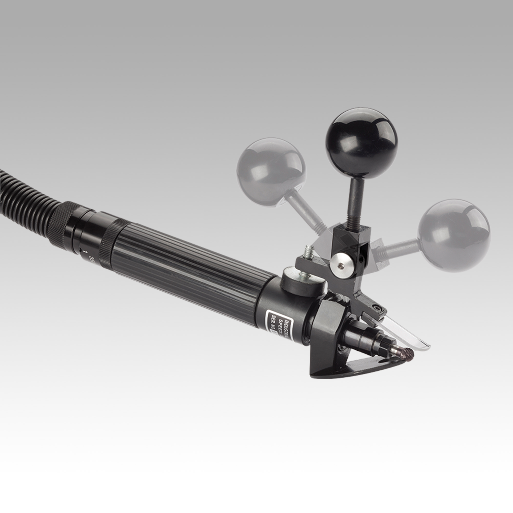 - Compressed air driven spindle-clockwise operation with compressed air hose (1.5 m)