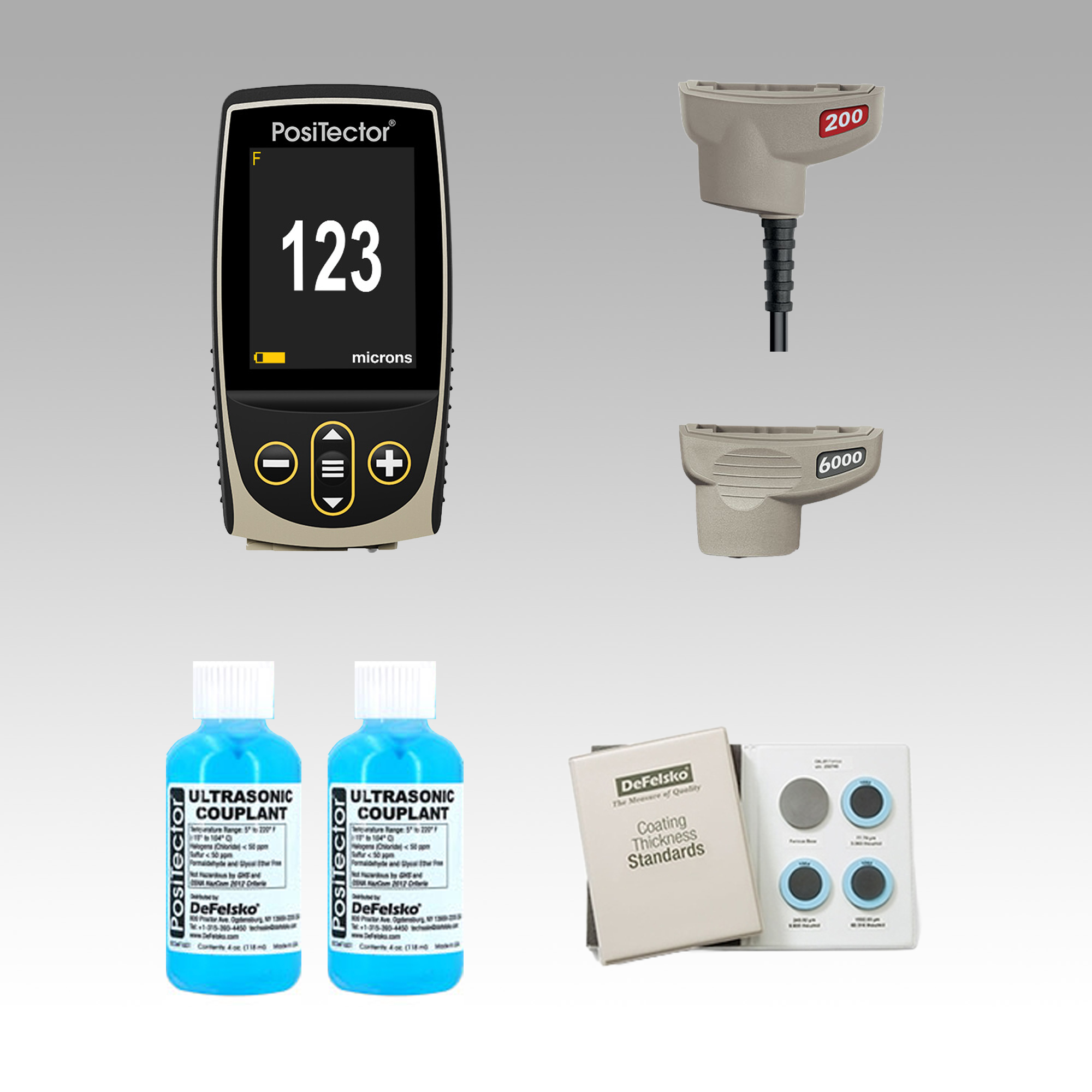 PosiTector Gage, probes, and other accessories. Designed for use on a variety of materials with the correct probes and accessories attached.