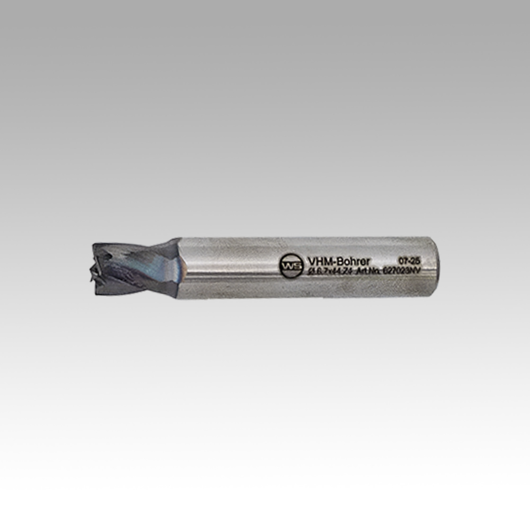 4-flute solid carbide end mill with a shank diameter of 8.0 mm and a cutting diameter of 6.7 mm with an overall length of 44.0 mm, suitable for Usibor, BTR, ultra high-strength and mega high-strength steels, and for removing spot welds in the hardest materials.
